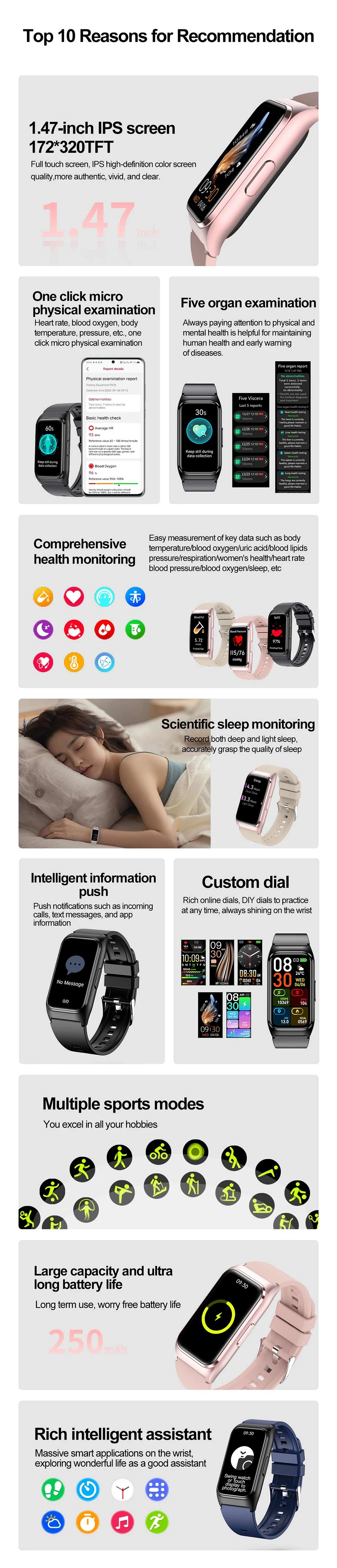 Outdoor Healthy Sports Wristband Five Organ Detection One Click Micro Physical Examination Women's Health Smart Bracelet IP68